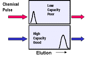Chemical properties of a tracer can also be designed to provide information on the integrity of the filter other than mechanical defects, such as the adsorptive or chemical (sorptive) activity of the adsorbent. The selected chemical tracer can provide information on the remaining adsorptive capacity of the filter by monitoring the retentivity (peak height, retention time) of the tracer through the adsorbent bed.
