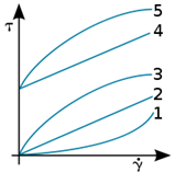 ![]() | Shear stress-shear rate diagram: 1: Dilatant fluid |