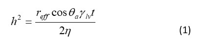 Washburn’s equation is based on the capillary driving force of a liquid that penetrates a compact vertical bed of particles with small pores and the viscous drag: