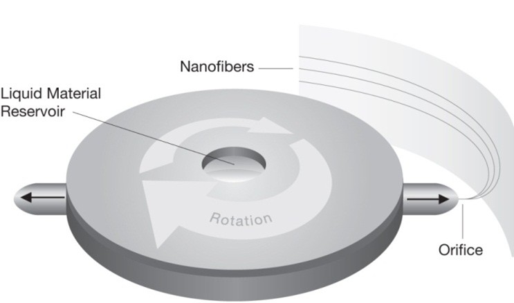 Figure 1 - Mechanism of Fiber Formation in ForcespinningTM Technology
